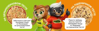 На пшеничном тесте - «Пицца от Медоеда» для всех, кто любит вкусно поесть. Это всем знакомое, понятное тесто, на котором обычно пекут пиццу. Пышное, сытное тесто с большим количеством начинки и нашими фирменными соусами.